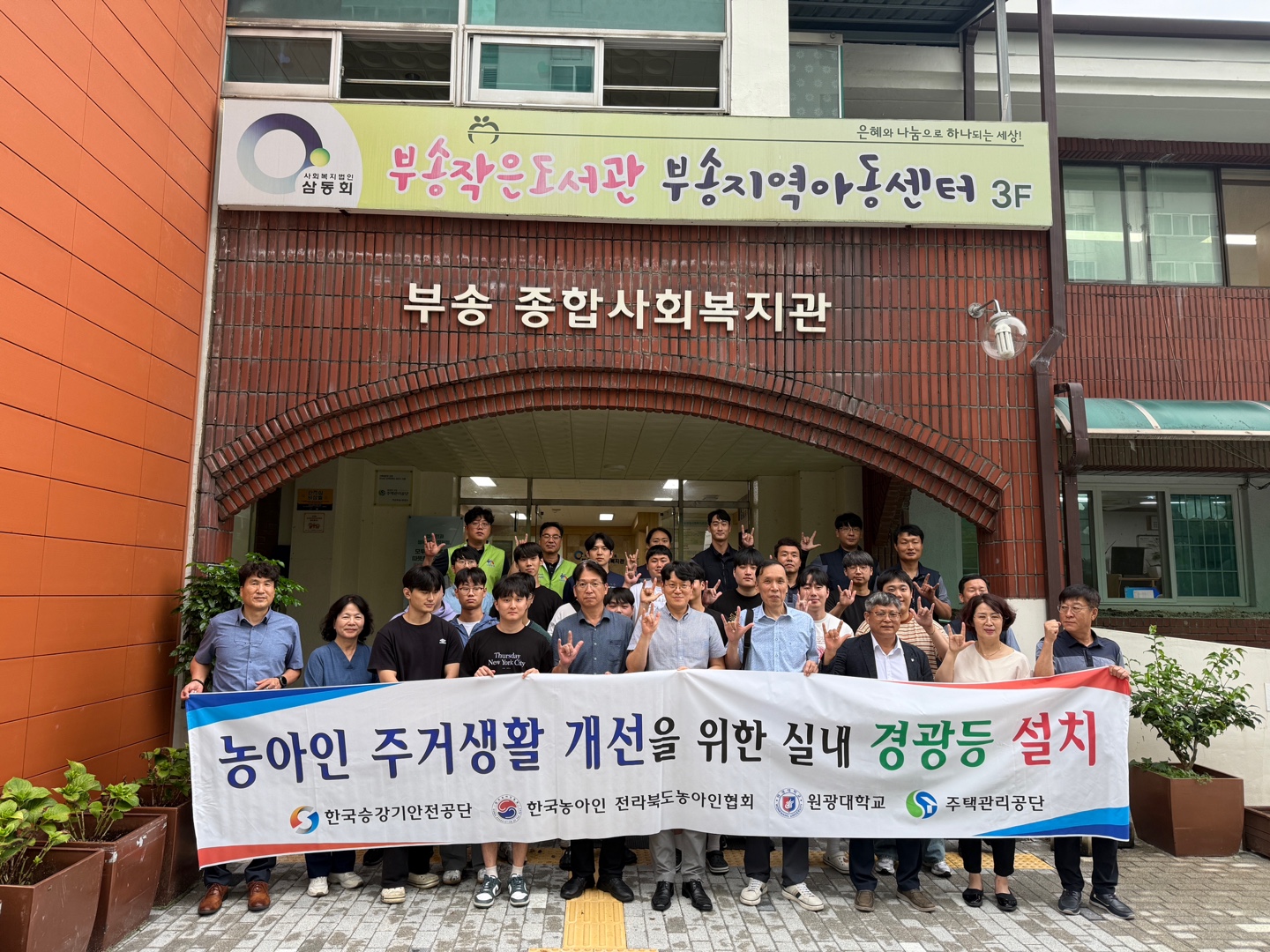 2025년 09월 09일 익산 부송 주공1차 아파트에서 진행된 지역사랑 봉사활동은 원광대학교 전기공학과, RISE 사업단, 한국승강기안전공단, 한국농아인 전라북도농아인협회, 주택관리공단과 함께 진행되었습니다. 농아인 주택을 방문하여 알람 경광등을 설치하여 주거생활 개선과 아파트 승강기 안전교육 등을 진행 하였습니다. |