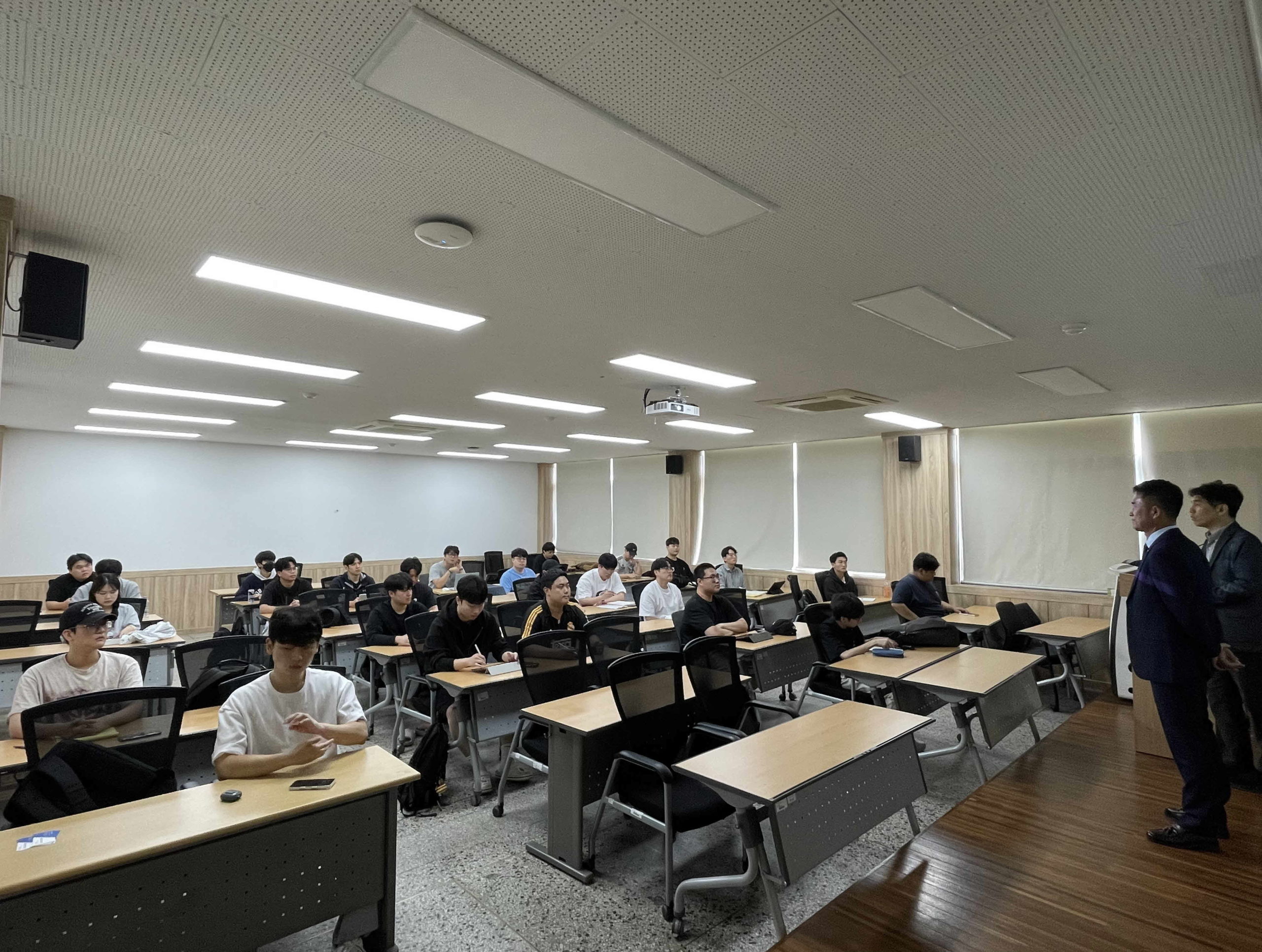 학과소식(갤러리) 전기공학과 산학옴니버스강좌 전문가 특강(2025.09.30) 전기공학과 산학옴니버스강좌 전문가 특강(2025.09.30) 전기공학과2025-10-01 페이스북 트위터 구글플러스 이메일 프린트 원광대학교 창의공과대학 전기공학과가 주관하고 원광대학교와 대학혁신사업과의 지원으로 산학옴니버스강좌가 2025년 9월 30일(화) 3교시에 204강의실에서 진행 되었습니다. 이번 특강은 주식회사 에스에스의 곽성운 대표님께서 진행해 주셨습니다. [미래지향적 에너지 전환 분산형 전원 시스템] 주제로 강의해 주셨습니다. 이전학과소식(갤러리)