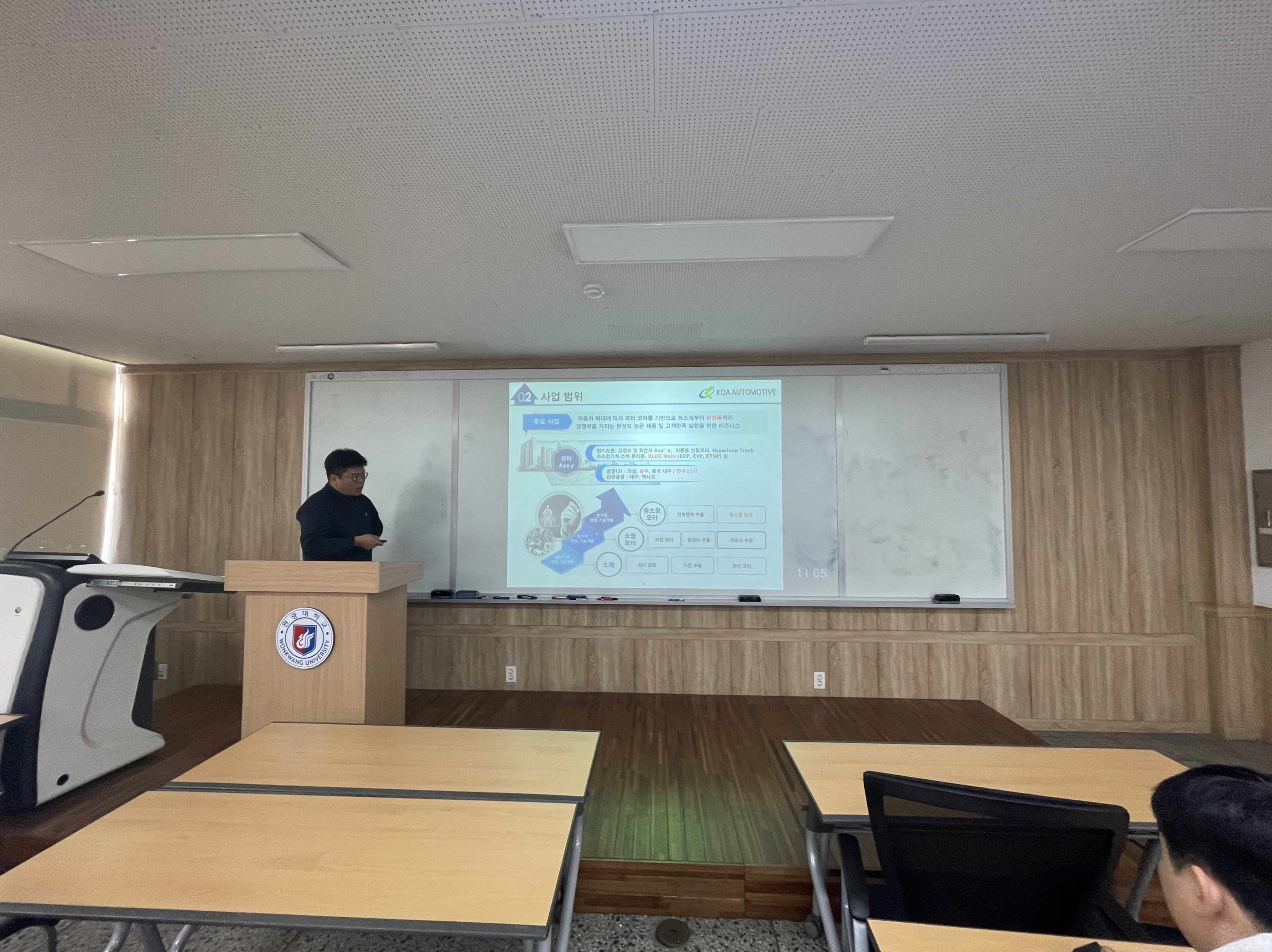 원광대학교 창의공과대학 전기공학과가 주관하고 원광대학교와 대학혁신사업과의 지원으로 산학옴니버스강좌가 이번 특강은 (주)코아오토모티브의 주민기 책임연구원님께서 진행해 주셨습니다. |