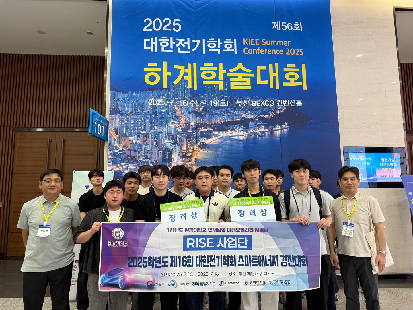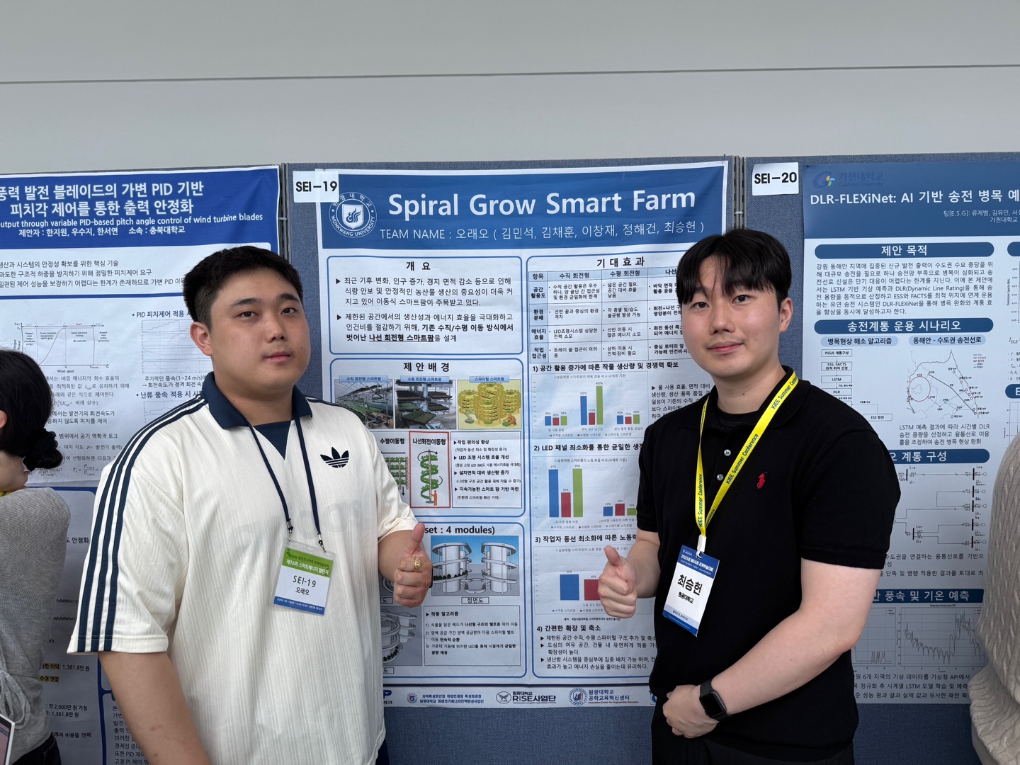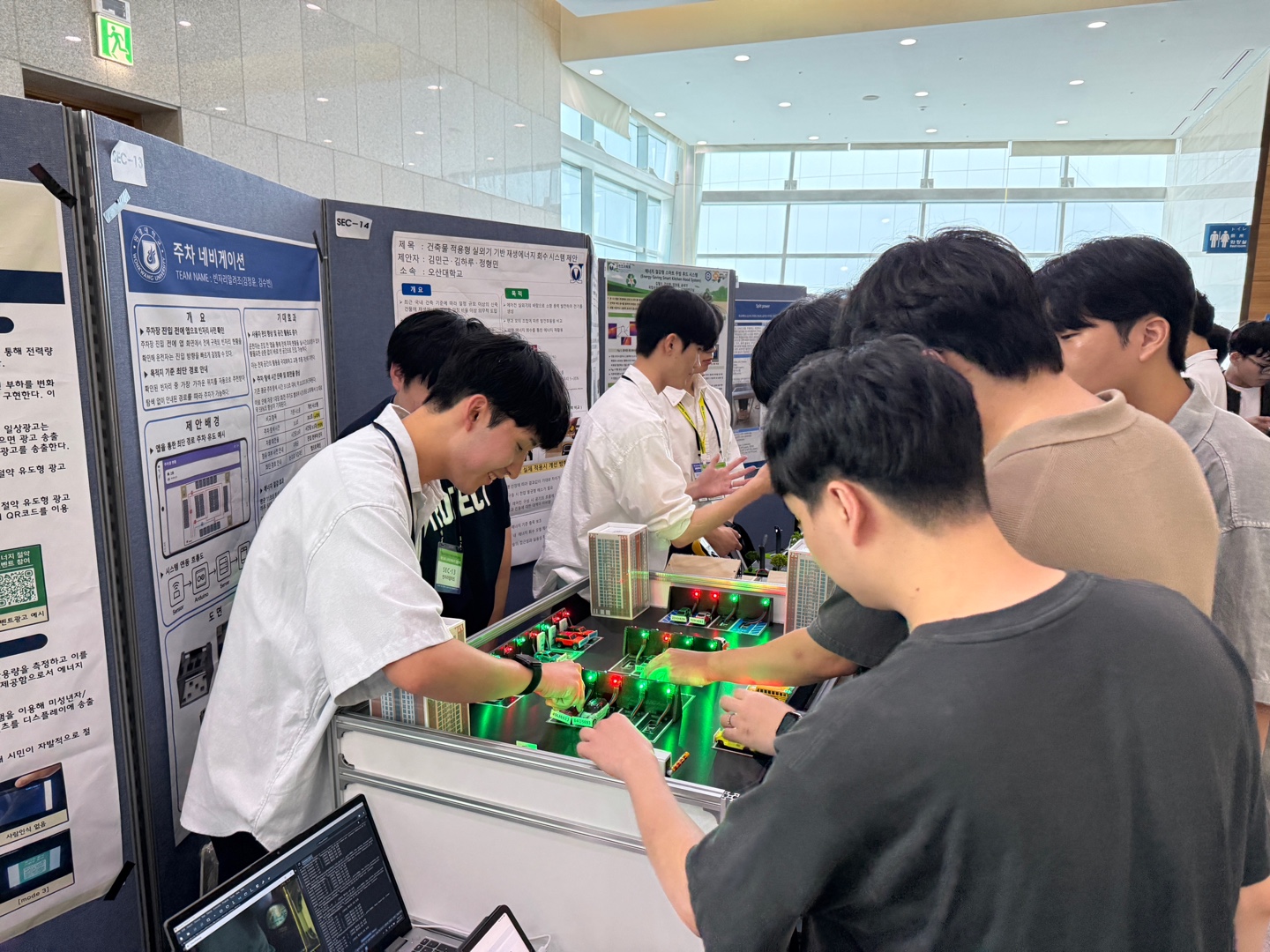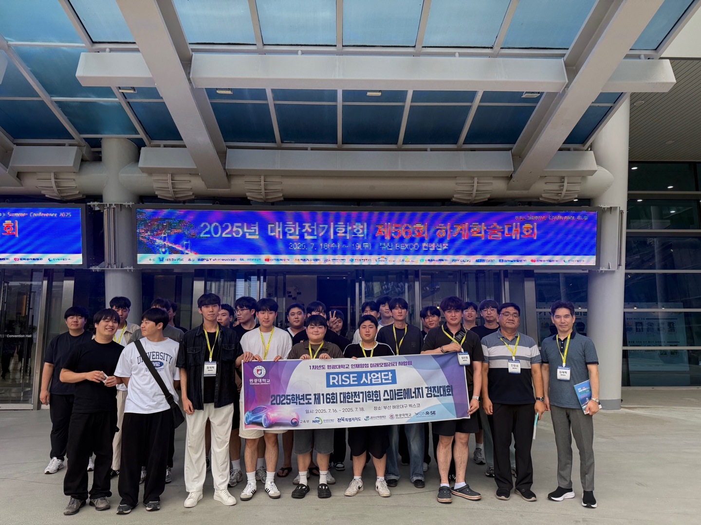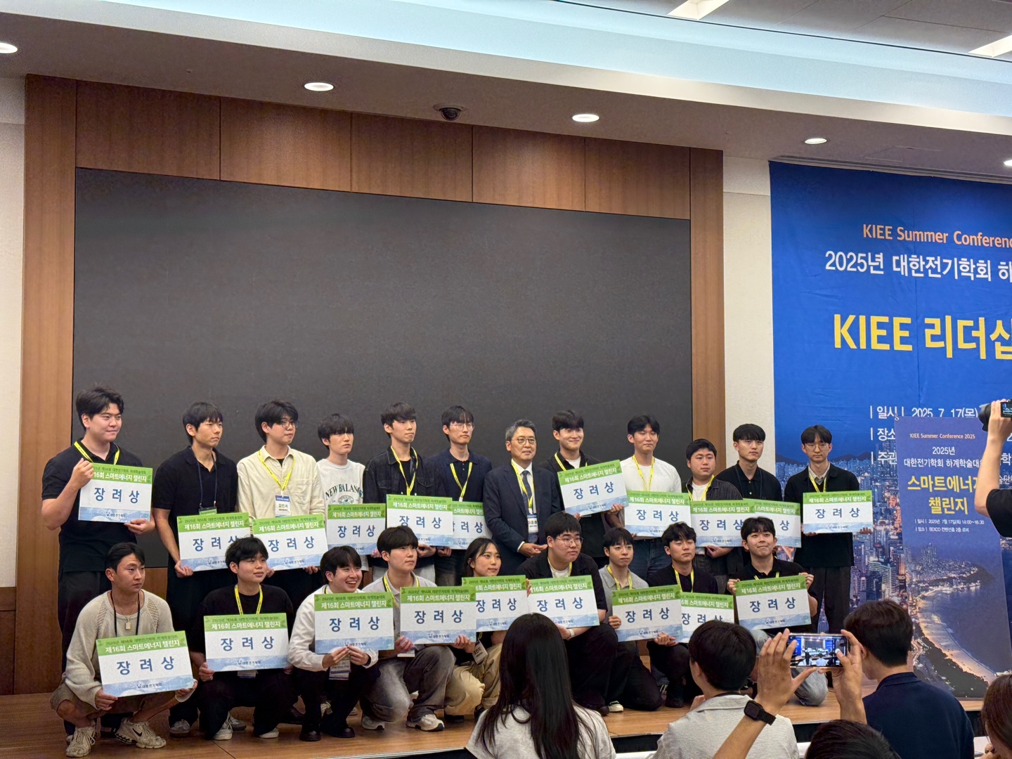 학과소식(갤러리) [축] [미래전기에너지사업단] 2025년 대한전기학회 하계학술대회 스마트에너지첼린지 수상 [축] [미래전기에너지사업단] 2025년 대한전기학회 하계학술대회 스마트에너지첼린지 수상 전기공학과2025-09-29 페이스북 트위터 구글플러스 이메일 프린트 2025년 07월 16~18일 부산 벡스코에서 열린 2025년 대한전기학회 하계학술대회 스마트에너지첼진지에 참여하여 우수한 성적으로 장려상 2팀이 수상하였습니다. 이전학과소식(갤러리)다음